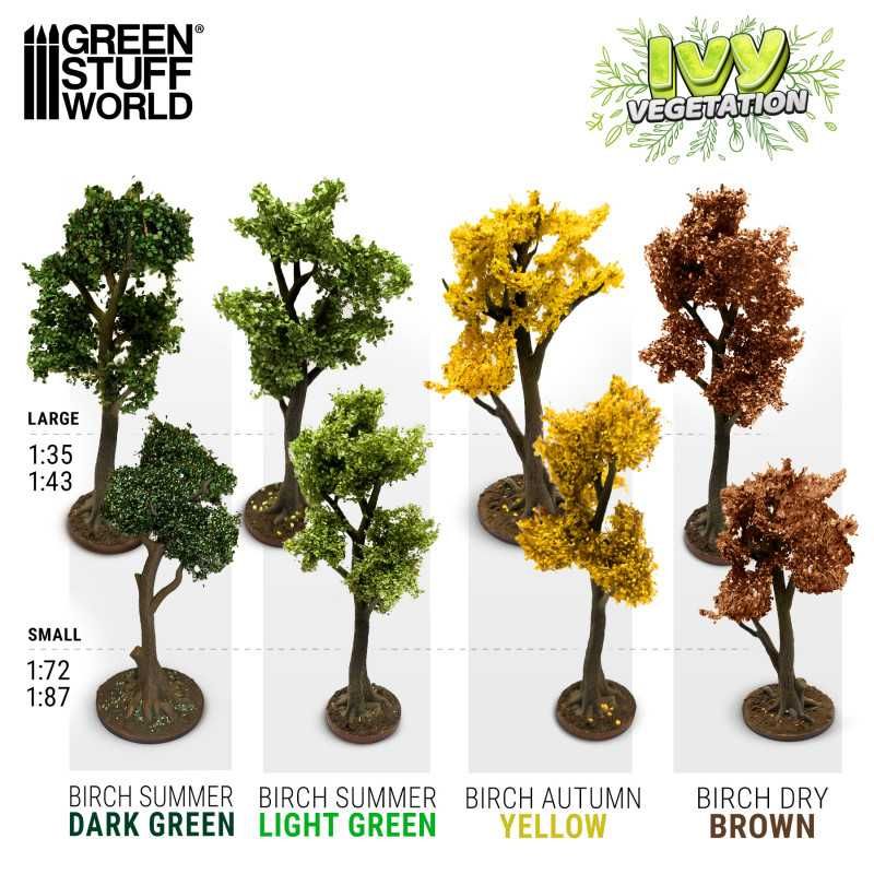 Ivy Foliage vegetation sheets from Green Stuff World are specialized sheets with leaves of different types, colors, and sizes designed to replicate the appearance of vine leaves and the leafiness of a tree on a miniature scale.