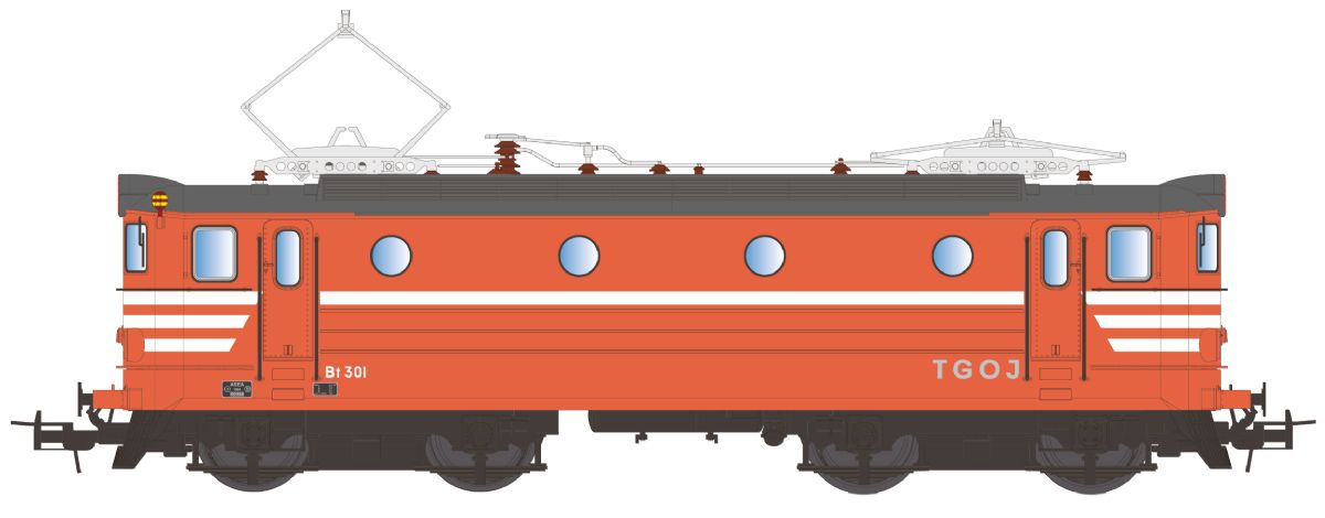 Helt ny konstruktion av det fina Bt-loket som TGOJ hade i trafik. Köp till Jecos TGOJ malmvagnar så har du ett tågset som verkligheten var på Trafikaktiebolaget Grängesberg - Oxelösunds Järnvägar.
